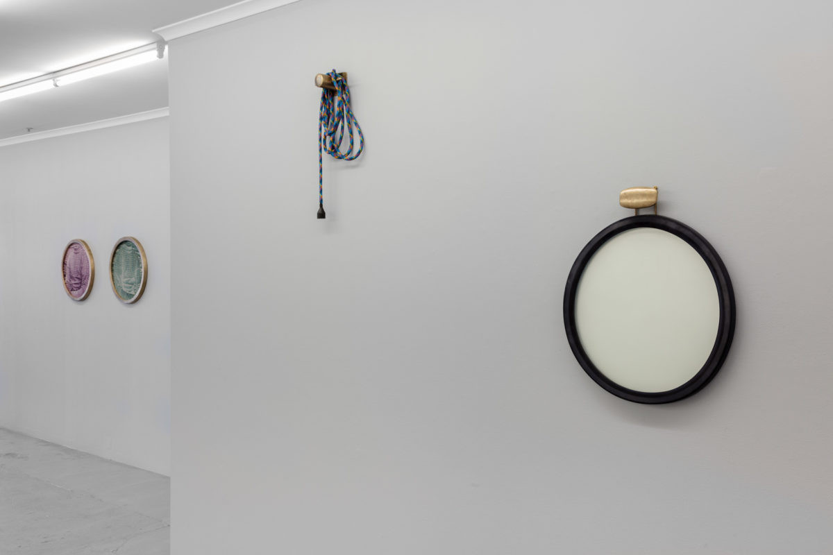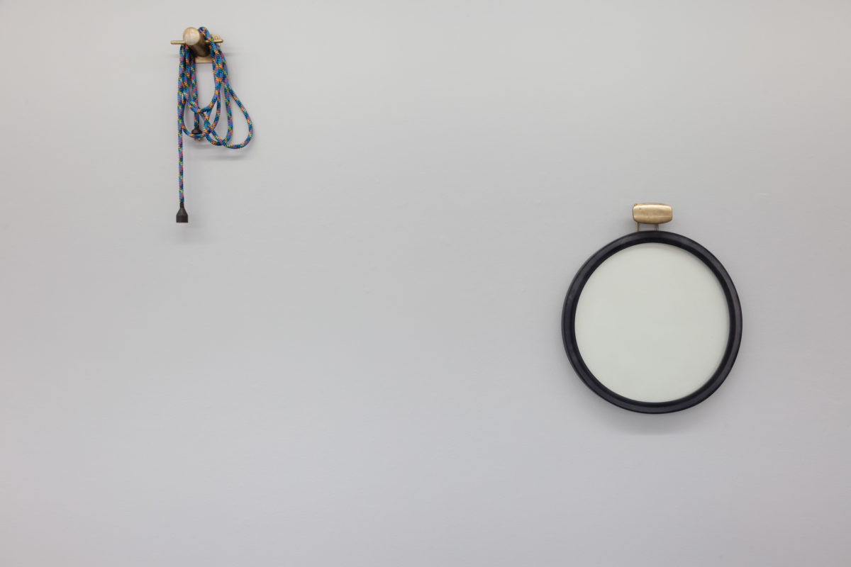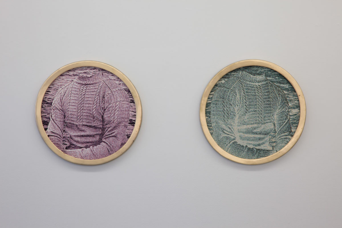 Avoiding and Courting Collision is a series of forms used to map a triangle of longing between art making, men and place. These three things are a constellation in flux for the artist, and are called out to when circumstance and myths fall short. The work consists of hand-cast bronze forms (cleats, bridle-hooks, electrical plugs and circular frames), alongside photo-tapestries of appropriated, and re-imagined sea-narratives.