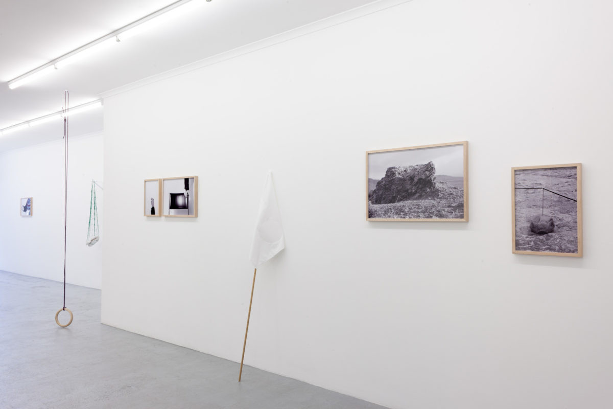 In Base Camp Kate Beckingham revisits the physical activities she undertook while on a residency in Iceland in late 2013. Her difficulties and struggles when walking up a volcano crater, falling down into sulphurous clay and the disorientating experience of feeling both simultaneously high up on the earth and low beneath the massive scale of Iceland’s natural landscape are explored in present time using photographic images and sculptural forms. Gestures of falling, reaching and stepping up are implicitly referenced as a way of considering the time passed between her instinctive reactions in the Icelandic landscape and the act of making this work. By placing images of gestures alongside objects that have the appearance of being helpful but that are essentially useless, this exhibition brings into being Beckingham’s thought processes; compressing the distance between present art making and past accidents, time and space.