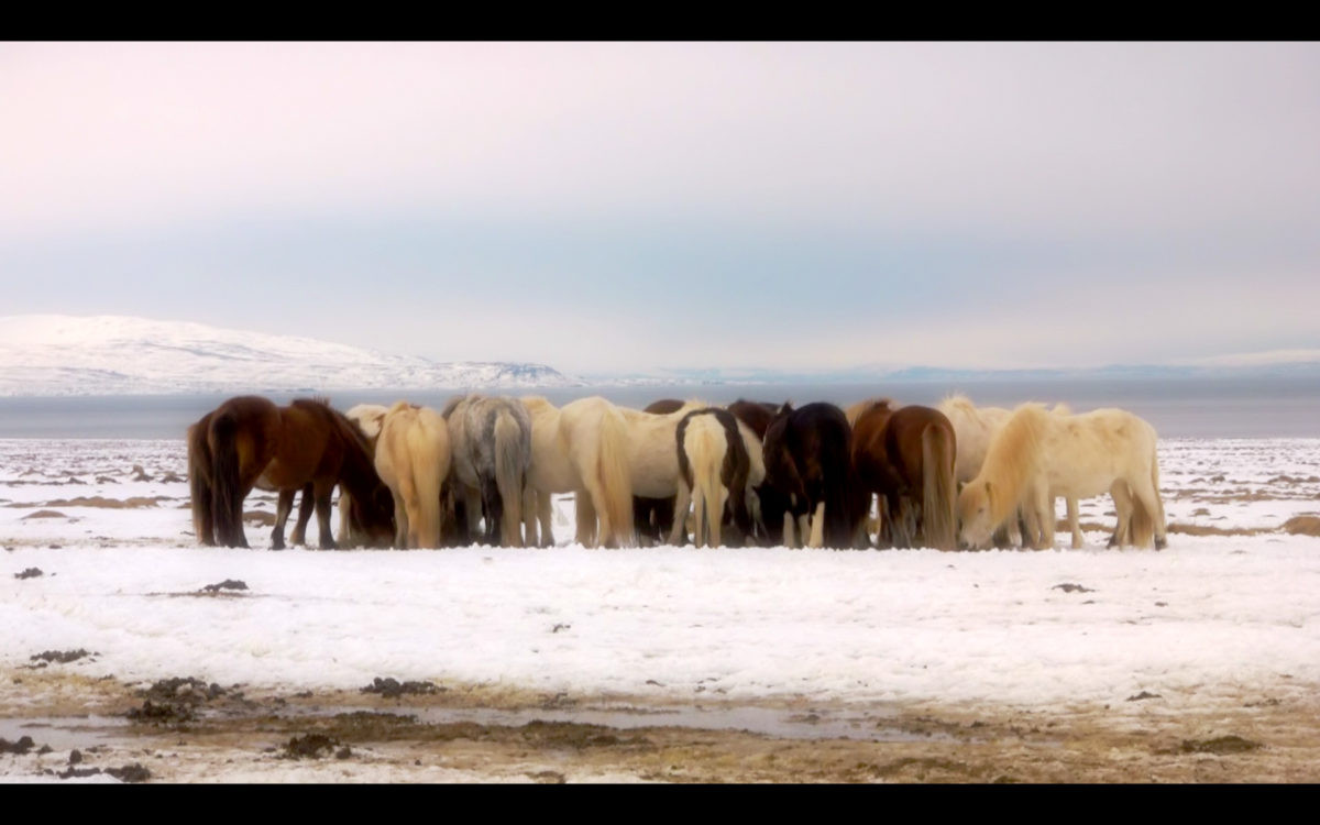A halt being the moment a horse stops all movement with all 4 feet equally balanced. It’s interesting to note that the Icelandic horses in Bruniges’ video have their own unique gaits, as well as the more tradition gallop, trot and canter. An Icelandic horse has a tölt, a kind of ambling movement, and the speedier skeið or ‘flying pace’. This makes the Icelandic horse, which is smaller – often pony-size – a rare five-gait horse. <http://www.icelandichorses.co.uk/the_special_gaits_of_the_icelandic_horse.htm>