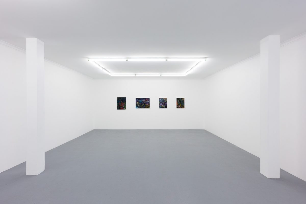 My artistic practice is rooted in a desire to explore human depth, through an opening up of virtual spaces, using spatial understanding as an intuitive gateway towards the entangled and timeless realms that lie beyond the deadening abstractions of the discursive mind. In this exhibition I have derived my inspiration from the poetic descriptions of the wondrous realm of night in Wagner’s Tristan und Isolde, with the motif of darkness representing movement into the depths of (for want of a better term) the inner self, existing in dynamic tension with an occult luminosity representing the mystical experience of the awakening of an intimate relationship with that inner self. This aesthetic concept is rooted in my own experiences of the euphoria of the lucid dreaming state, and the way that a spatial understanding lies at the basis of both the attainment of transformative states of consciousness as well as my evolving artistic process.