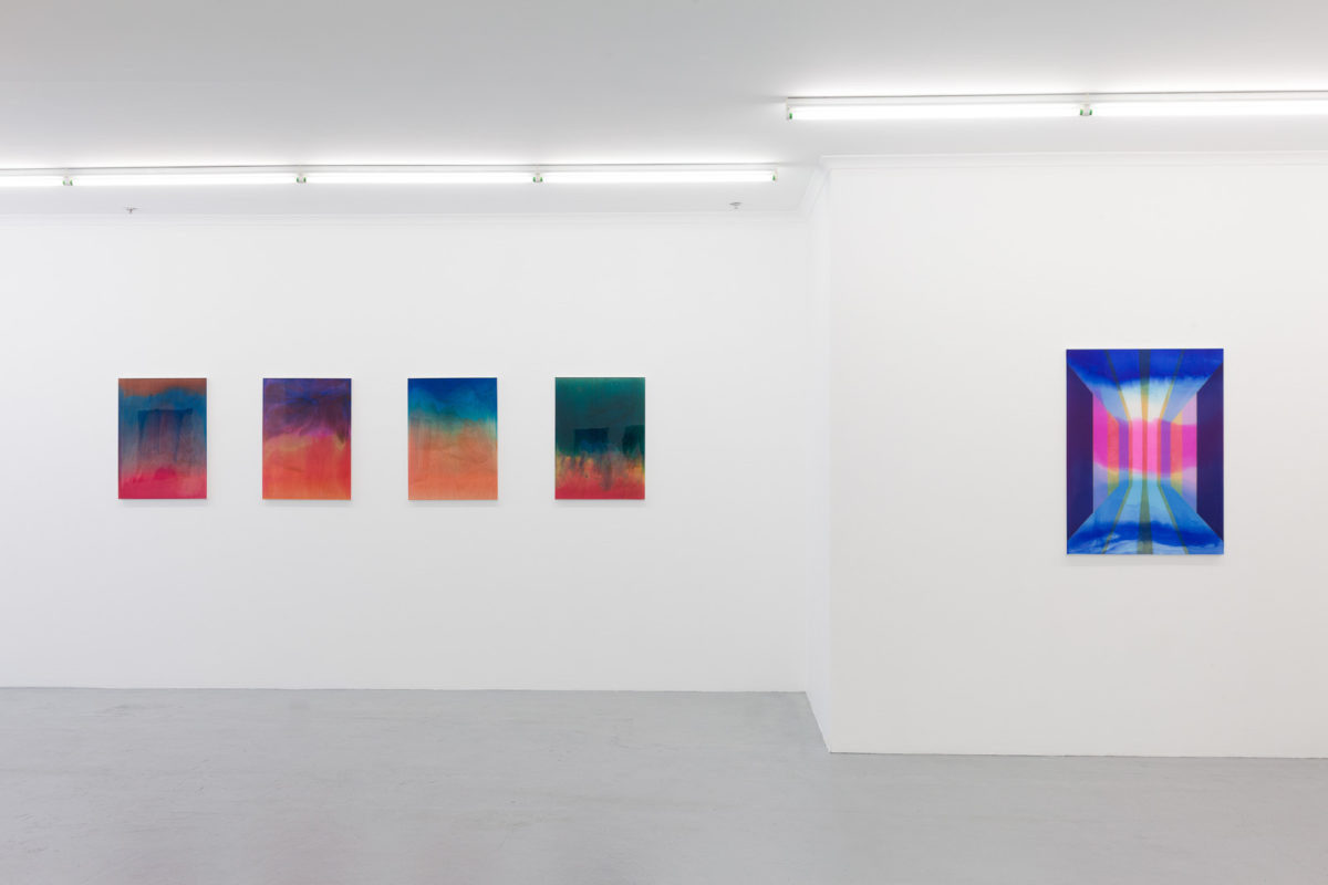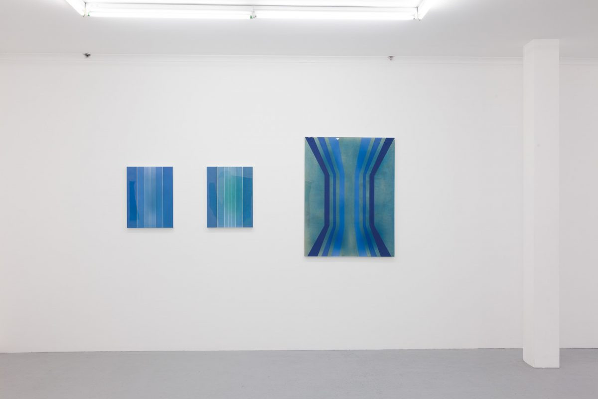 The paintings evoke a space of time between events or states, a difference in pitch between two tones, a space between two things, a pause between movements. The shallow depth of the painting surface contributes a substantially different element of spatiality to other traditional pictorial approaches – including linear perspective, relative scale of form, and contrast in colour saturation – and interacts with the formal compositional structure of the overall work. By transforming the surface of the abstract painting into a dimensional realm, Interval is able to suggest movement and depth beyond the flat picture plane.