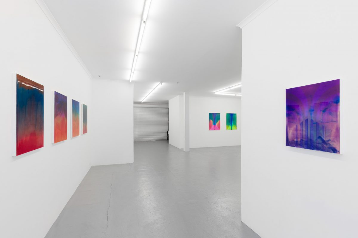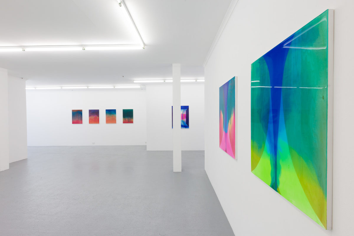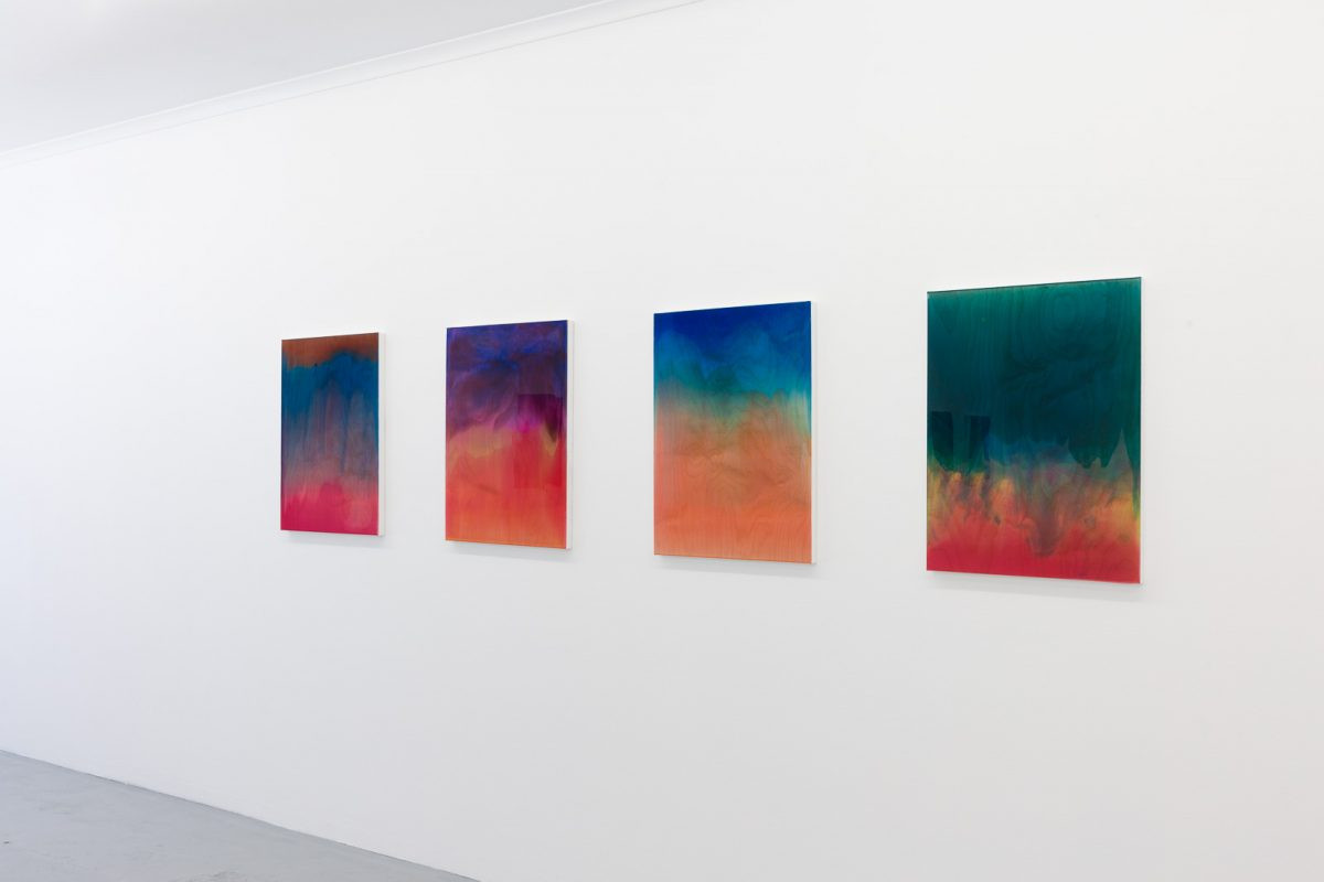 Interval is a series of new abstract works by Rochelle Haley exploring the tension between concrete form and the pull of movement. The works comprising acrylic, dye and resin are made with an innovative technique of layering translucent and opaque pigments, building the illusion of represented depth into a material thickness.