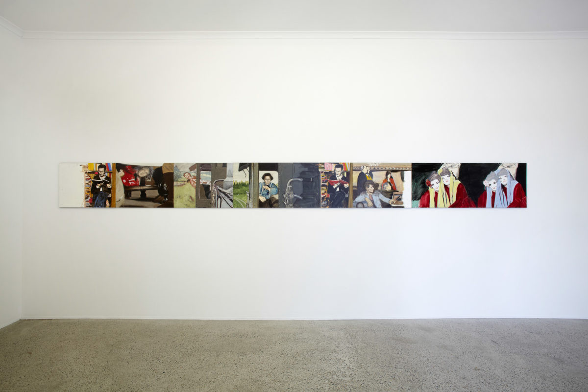 Sydney born Nicola Smith has always been passionate about the act of painting. Interestingly, the artist’s shift towards film began following extensive travel overseas, after which she relocated to Hobart for her Honours degree at the Tasmanian School of Art in 2009. The astonishing body of work produced during this period – The Crowed Overwhelms Baptiste (2009) – comprised over one hundred oil paintings that depicted French actor Jean-Louis Barrault as mime Baptiste, in the final crowd scene in Marcel Carné and Jacques Prévert’s seminal film Les Enfants du paradis (1945). This impressive undertaking took inspiration from a photograph of this terrifying finale discovered by Smith while researching the film, the still image revealing the complexity of the crowd that the cinema spectator comes to miss. Les Enfants du paradis, or Children of Paradise, sets a story of unattainable love in the Parisian theatre world of the mid 19th century. A landmark of poetic realism, a movement of the 1930s and 1940s often aligned with painting, that accentuated ‘the space of the story world: the setting and arrangement of figures…to emphasise the complex interplay between society and individuals.’1 It employed techniques such as mise-en-scène and evocative lighting to enable visual elements to ‘work in concert’ to allow ‘rich interpretations [to] grow out of serious contemplation of aesthetic elements.’2 The genre explored through painting became a rich resource for Smith, and the artist’s own intimate study is revealed in her ritualistic painted gestures and act of comparison as the original five turned into one hundred, each ‘filling in the gaps for the others.’
